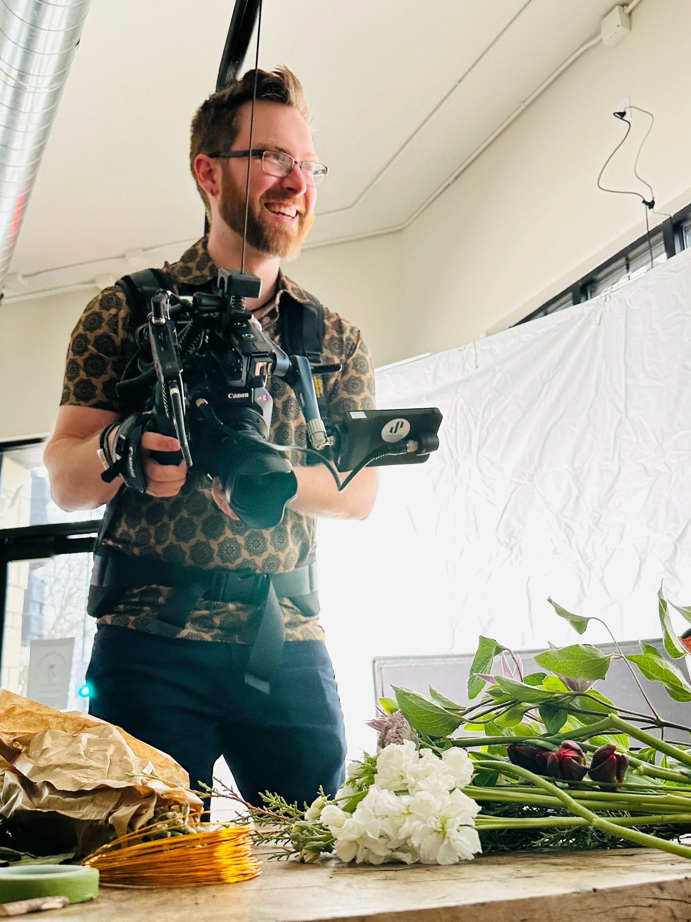 This past year, I’ve been working with a new client, Fiskars. Yes, the one that is 376 years old at the time of writing this blog. It’s pretty wild to have a client who has been around for such a long time and has a high standing in the business world. I teamed up with my good friend Daniel Kinney, who owns The Diligent Company, to tackle a series of spots for their iconic Orange Handled Scissors. Fiskars was looking for several spots that showcased the different uses and people who use their scissors. This wasn’t a huge budget. However, it was sizable enough to make it work with a small crew for a total of 2.5 days of shooting. We had enough money for a crew of a Director, DP, Producer, Photographer, and Gaffer. We paired up with one of our favorite producers, Jenna Wilcox to help us produce and find as many subjects as we could. We also needed to capture photo assets while we were shooting the commercial. We were able to secure our choice of photographer, Chris Hynes. Chris and I have worked alongside each other in a lot of shoots that require this kind of dance between capturing video and photography simultaneously. It can be a little tricky at times, but having someone who knows what they need and is a blast on set can set you up for sucess. Chris and I have developed a dialogue and understanding that helps photography and video to flow seamlessly and help each other capture what we need for our clients.